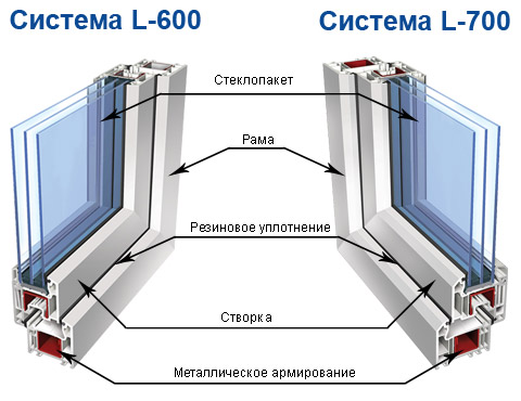 Оконные рамы и створки изготавливают из ПВХ профиля LG Hausys. Специально для России разработано две системы ПВХ профилей L600 и L700. При разработке этих систем воплотилась идея создания оконного профиля обладающего только реальными преимуществами.